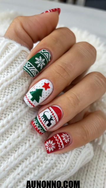 Ugly sweaters knit fun on nails. You mimic patterns like reindeer. Colors clash boldly.