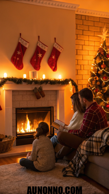 Blur the background slightly to emphasize the cozy scene. Add Christmas pillows or stuffed toys for extra charm. These images feel like happy holiday memories.