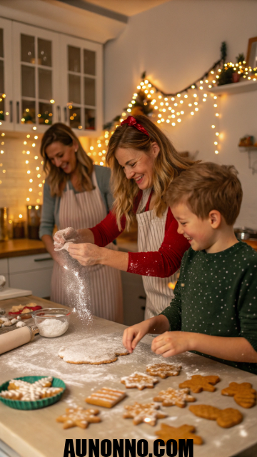 Use overhead shots when mixing or icing cookies. Hands covered in flour make the scene come alive. Natural kitchen lighting keeps it warm and homey.