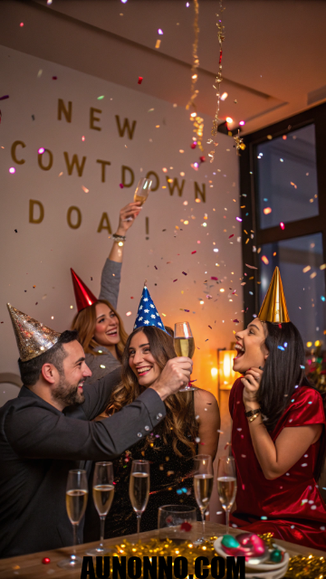 Celebrate the New Year’s countdown with cheerful party hats, confetti, and champagne glasses. Capture the excitement just before midnight or right after the clock strikes twelve.