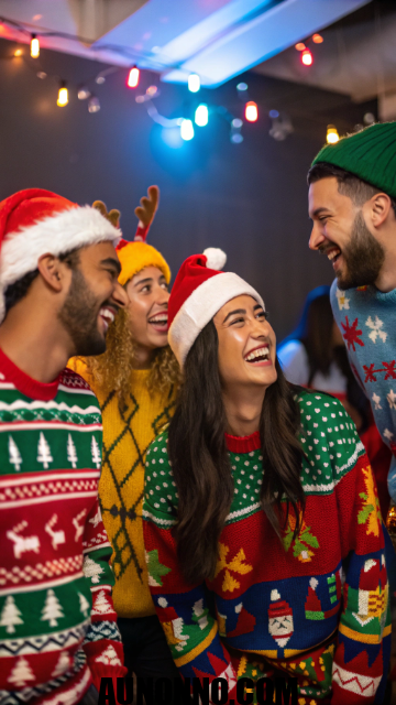 Add props like fake snow or festive hats for more character. Capture laughter and playful gestures. Bright lighting works best to highlight the bold sweater designs.