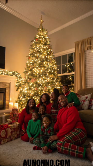 A classic family portrait never goes out of style. Gather everyone near the decorated Christmas tree and let natural smiles fill the frame. Use warm lighting to give your photo a golden glow that feels timeless and welcoming.