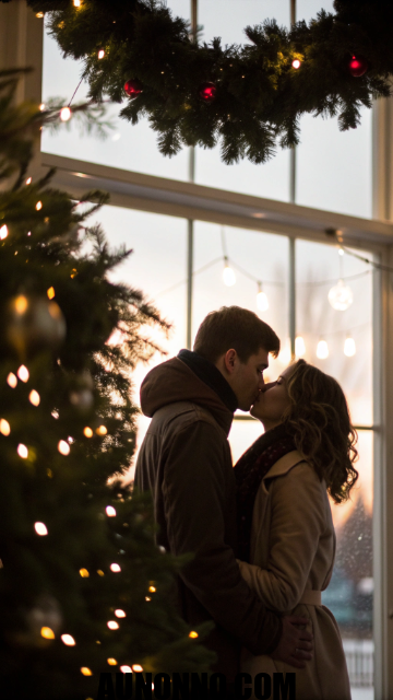 Romantic Christmas photos radiate love and comfort. Stand under mistletoe or near the holiday lights. Capture a gentle kiss or a warm embrace in soft lighting.