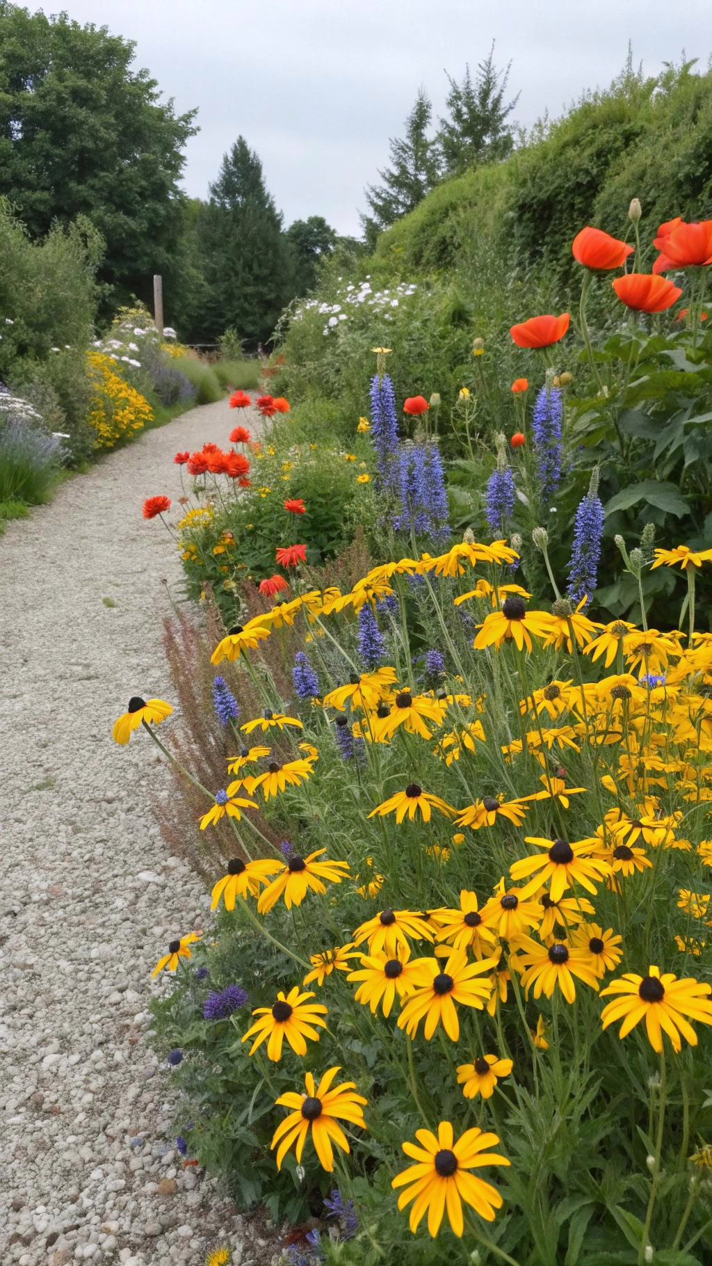 Create a wildflower border around your cottage garden. Use native wildflowers like black-eyed Susans, lupines, and poppies. This adds a natural, unstructured look to the edges.