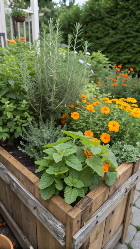 An herb-infused cottage garden combines beauty and functionality. Plant herbs like rosemary, thyme, and mint alongside flowers like marigolds and nasturtiums. This creates a sensory experience with both visual and aromatic appeal.