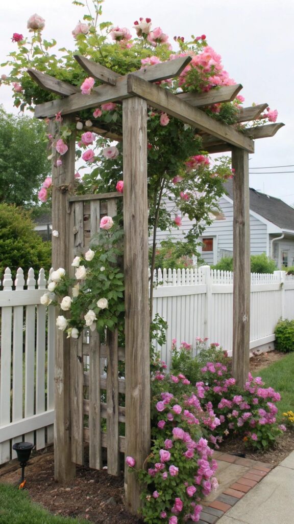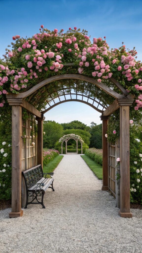 This creates a natural archway that feels magical. Place the arbor at the entrance or along a pathway. Add a bench nearby for a cozy seating area.