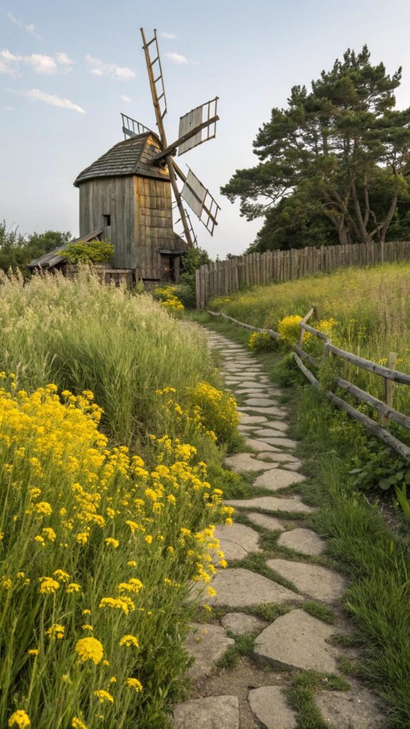 A rustic windmill adds a whimsical touch to your cottage garden. Use weathered wood or metal for a vintage look. Place it in a sunny spot surrounded by flowers.
