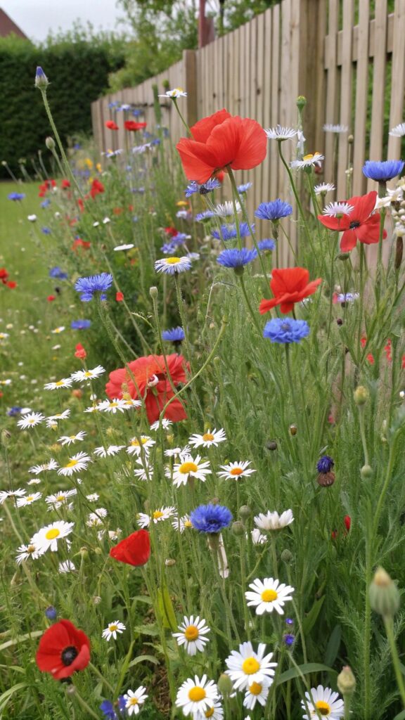 A wildflower meadow cottage garden is a low-maintenance option. It mimics the natural beauty of a countryside meadow. Plant native wildflowers like poppies, daisies, and cornflowers for a vibrant display.