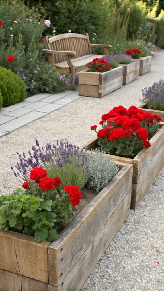 Use rustic planter boxes to add structure to your cottage garden. Fill them with a mix of flowers and herbs for a colorful display. Place them along pathways or near seating areas.