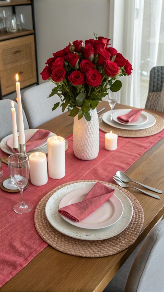 Incorporate red and pink accents throughout your home for a cohesive Valentine’s theme. Use items like table runners, napkins, or vases to add pops of color.