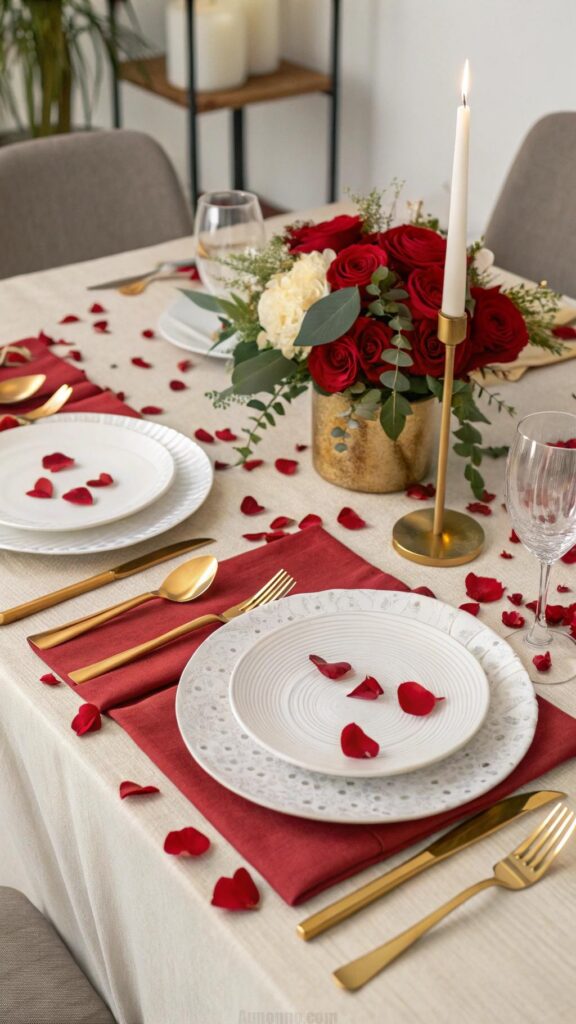 A beautifully set table can elevate your Valentine’s Day dinner. Use elegant dinnerware, cloth napkins, and glassware to create a sophisticated look. Add a touch of romance with rose petals scattered across the table.
