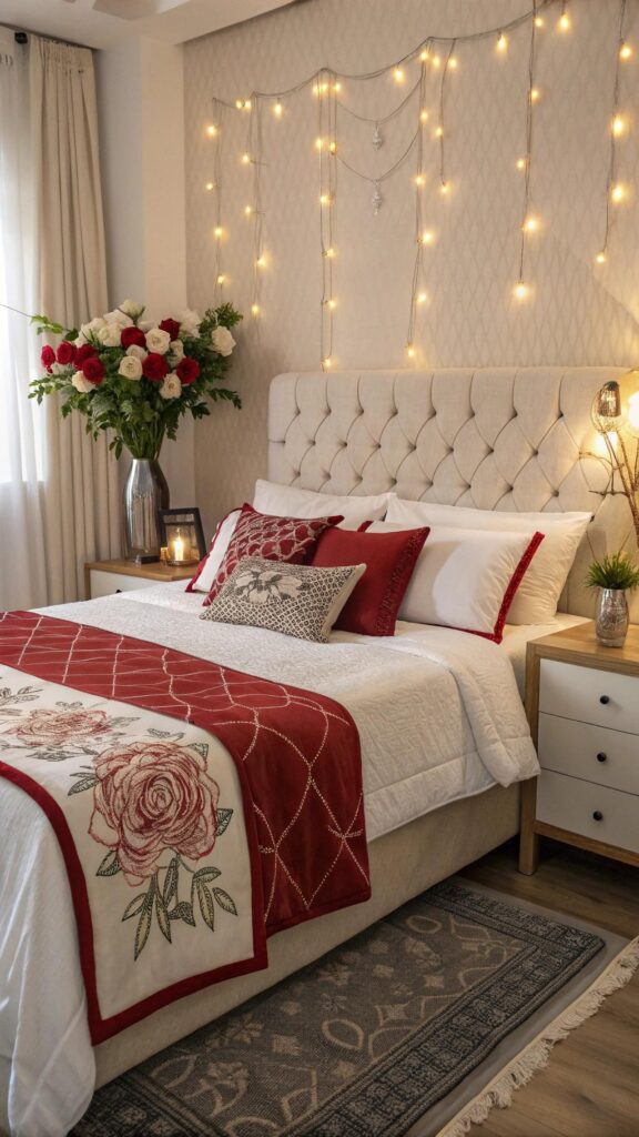 Upgrade your bedding, add string lights, and incorporate love-themed throw pillows. These simple changes can transform your bedroom into a romantic retreat.