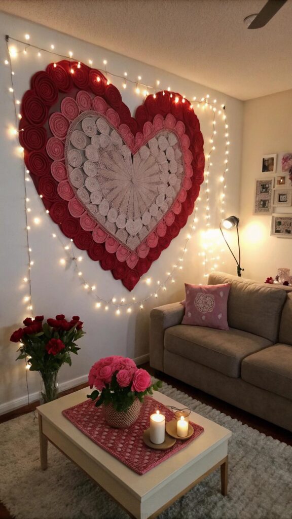 For a more personalized touch, consider using photos of you and your loved one to create a heart collage. This adds a sentimental vibe to your decor. Pair it with fairy lights or candles to enhance the romantic ambiance.