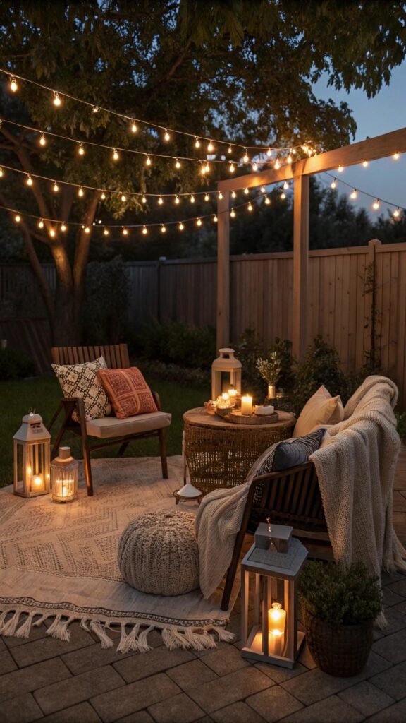 Add outdoor lighting to create a romantic atmosphere in your backyard or patio. Use string lights, lanterns, or candles to set the mood.