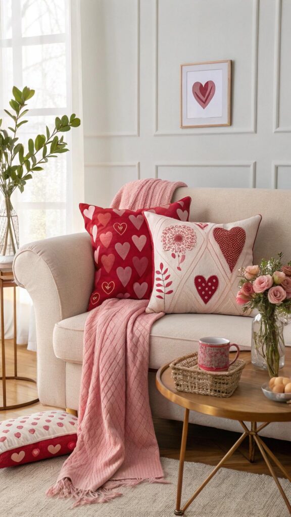 Swap out your everyday pillow covers for ones with Valentine’s-themed designs. Look for covers with phrases like “Love” or “XOXO” in romantic colors.