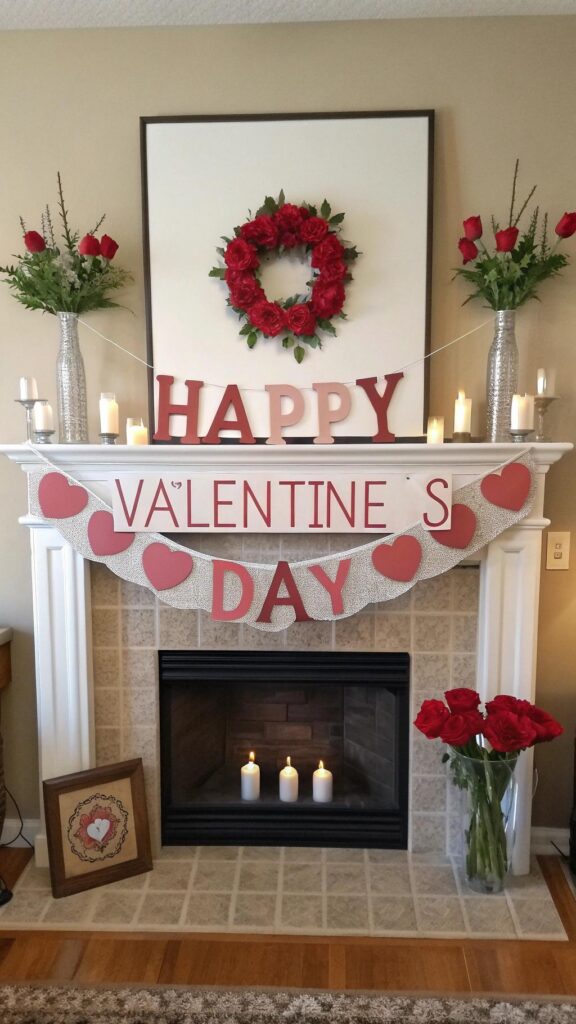 Hang the banner across your mantel, doorway, or wall for a festive touch. This idea is simple yet effective in adding a romantic vibe to your home.