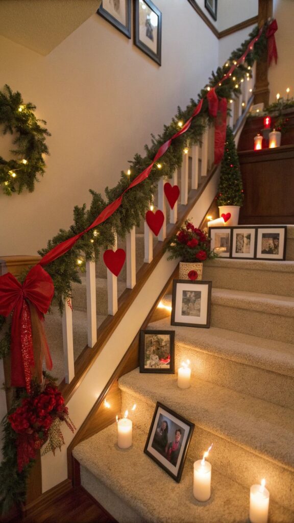 Decorate your staircase with garlands, ribbons, or heart-shaped decorations. This adds a festive touch to a often-overlooked area of your home.
