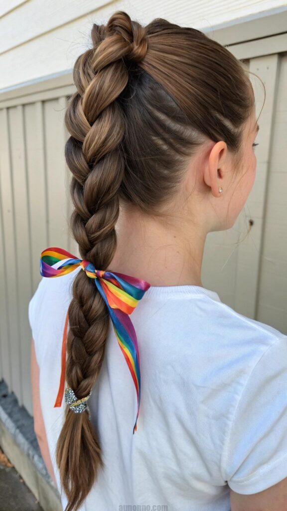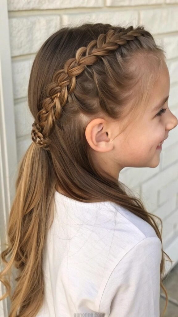 A braided ponytail combines the practicality of a ponytail with the charm of braids. To create this look, simply gather the hair into a ponytail and braid the length of the ponytail. This style keeps hair secure while adding a fun twist. The braided ponytail is perfect for school days or outdoor activities, as it keeps hair out of the way while still looking stylish. You can also add colorful hair ties or ribbons to the end of the braid for a playful touch.