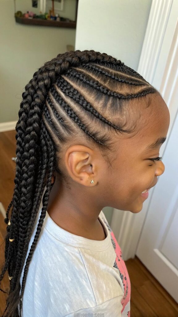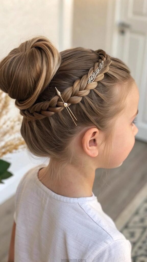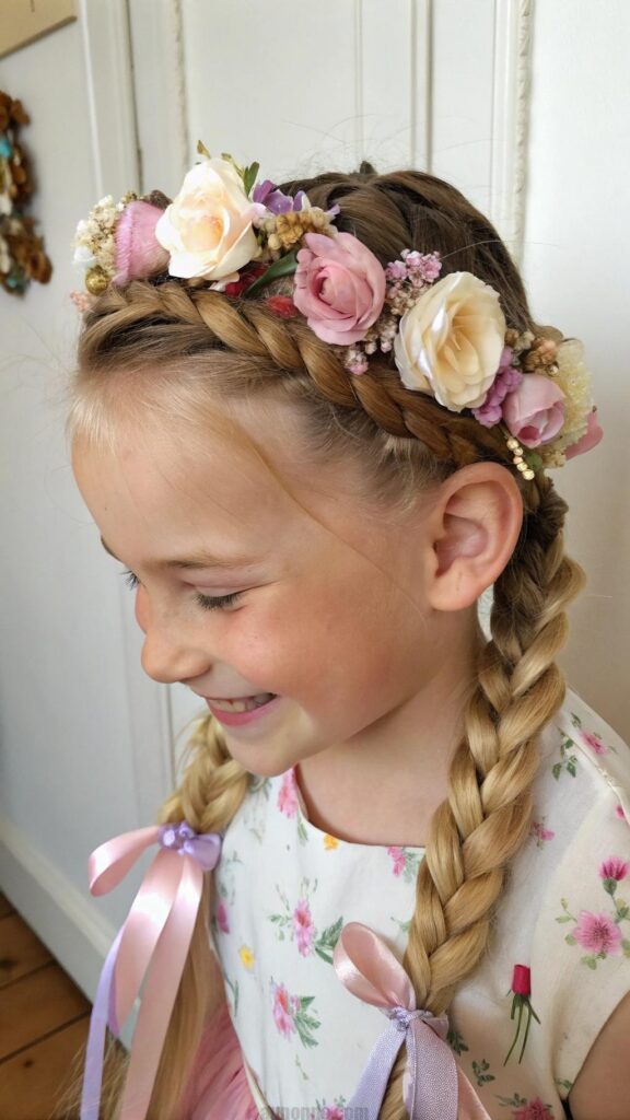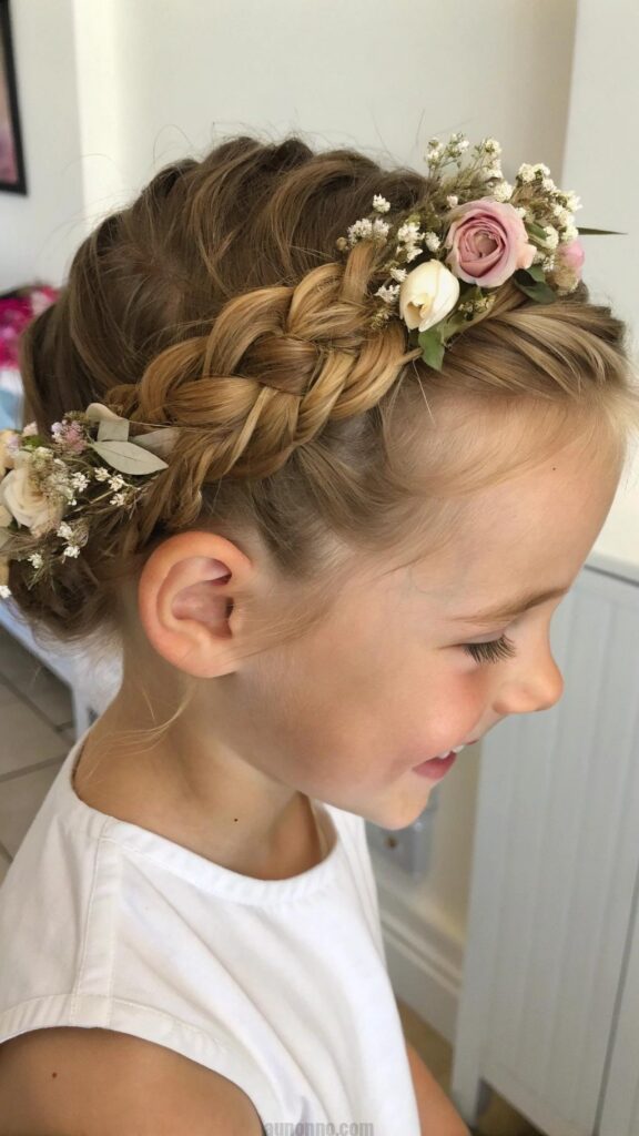 The braided crown is a whimsical hairstyle that makes any child feel like royalty. This style involves creating two braids on either side of the head and wrapping them around to form a crown. It’s perfect for parties, weddings, or any event where your child wants to shine. The braided crown can be adorned with flowers or ribbons for an extra touch of charm.