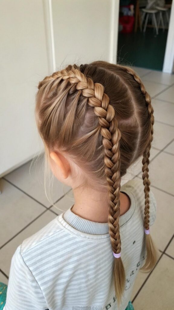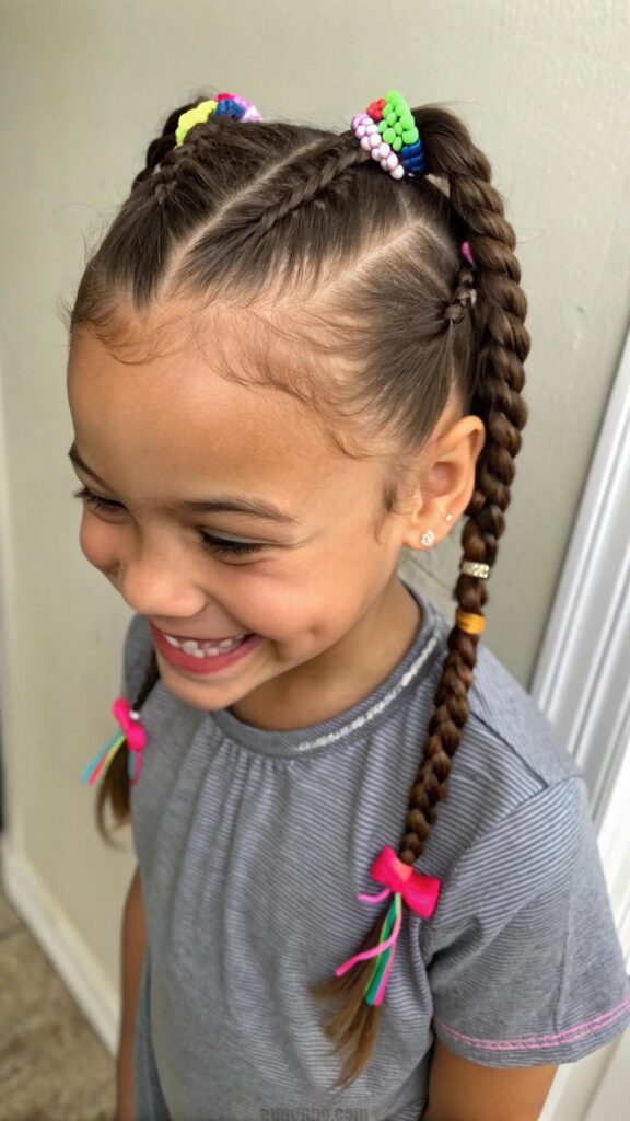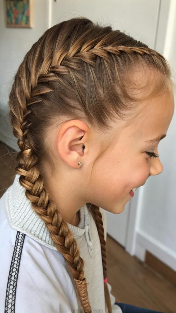 Braided pigtails are a classic and adorable hairstyle for kids. This style involves creating two braids on either side of the head, which can be styled in various ways. You can make them neat and tidy or messy for a more playful look. Braided pigtails are perfect for school, playdates, or any casual outing.