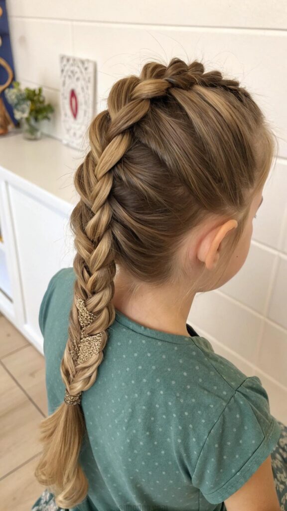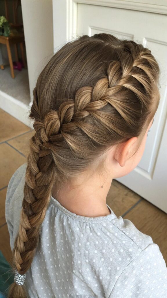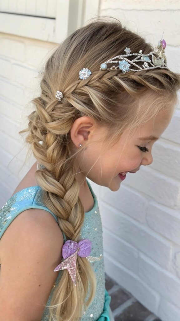 The mermaid braid is a whimsical and enchanting hairstyle that adds a touch of magic to any look. This style involves creating a loose, chunky braid that resembles the flowing hair of a mermaid. It’s perfect for special occasions or when your child wants to feel extra special. You can also add sparkly hair accessories to enhance the mermaid vibe.