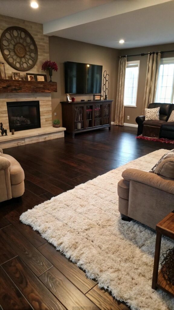 To soften the look, layer the floor with plush area rugs in contrasting colors or textures. This not only adds warmth but also creates visual interest, making the space feel more inviting.