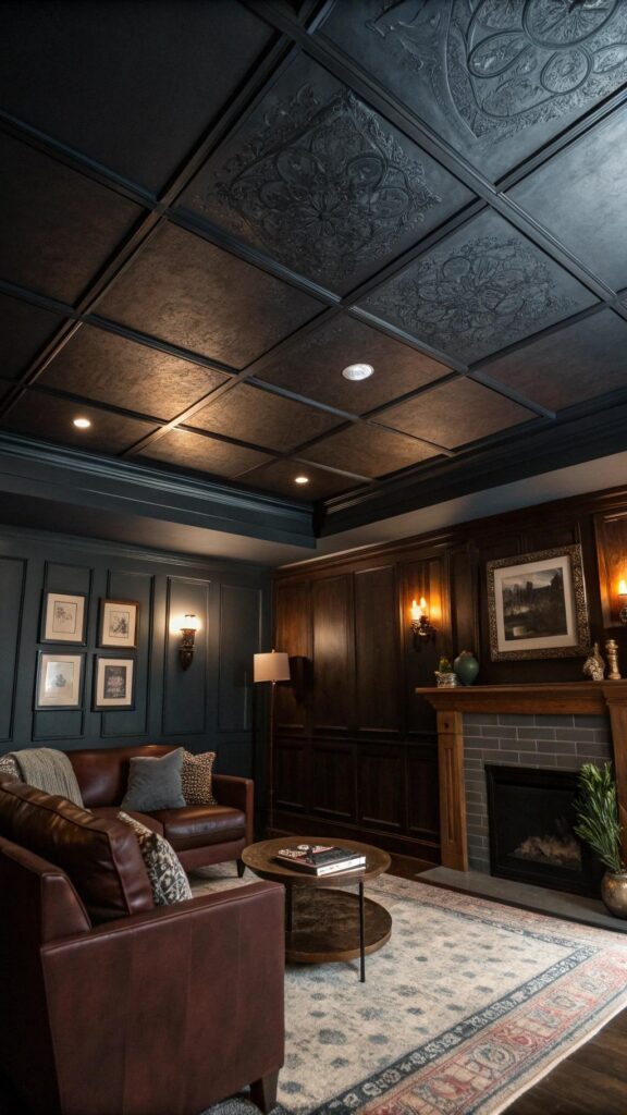 Consider painting the ceiling a deep color or using dark wood paneling for added texture. This design choice can make the room feel more enveloping and cozy, especially when paired with warm lighting.