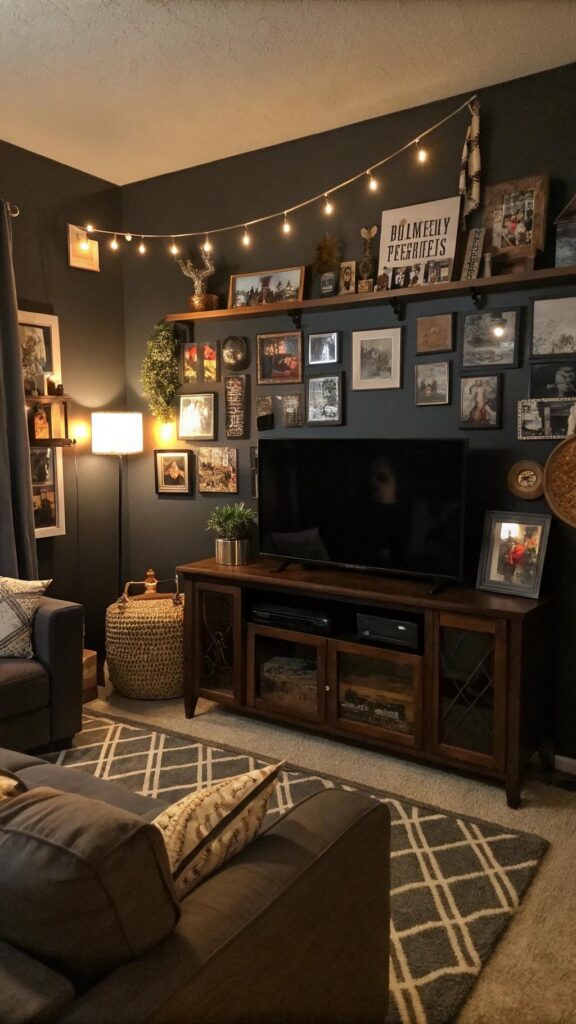 Finally, adding personal touches to your dark and moody living room can make the space feel uniquely yours. Incorporate items that reflect your personality, such as family photos, travel souvenirs, or handmade decor.