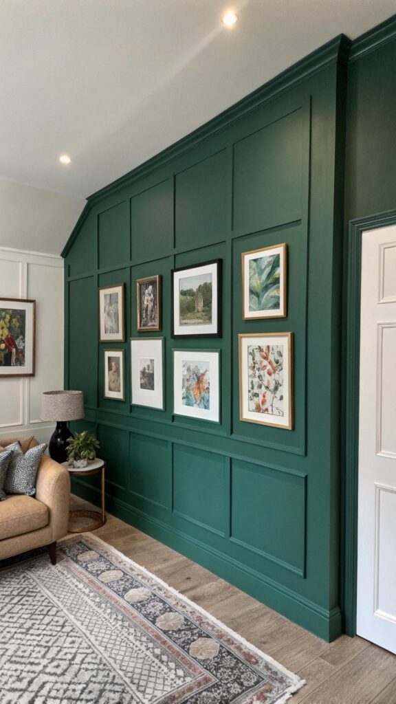 If you’re not ready to commit to painting all your walls a dark color, consider creating an accent wall. Choose one wall to paint in a deep hue, such as navy blue or forest green, while keeping the other walls lighter.