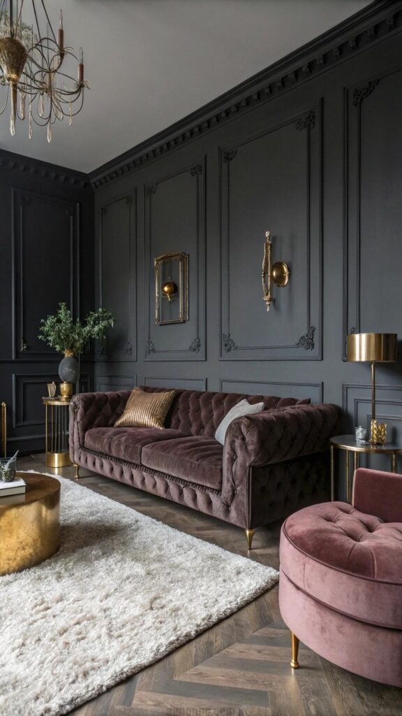 To enhance the moody vibe, consider adding textured elements like a plush velvet sofa or a shaggy area rug. Incorporating metallic accents, such as gold or brass fixtures, can also add a touch of glamour to the space.