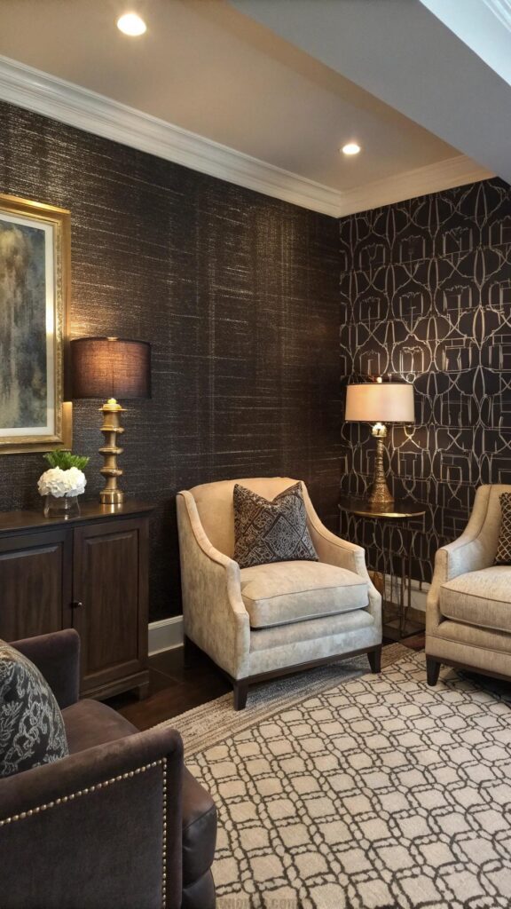 This design element can serve as a conversation starter while enhancing the overall moody aesthetic. Pair textured wallpaper with complementary decor elements to create a cohesive look.