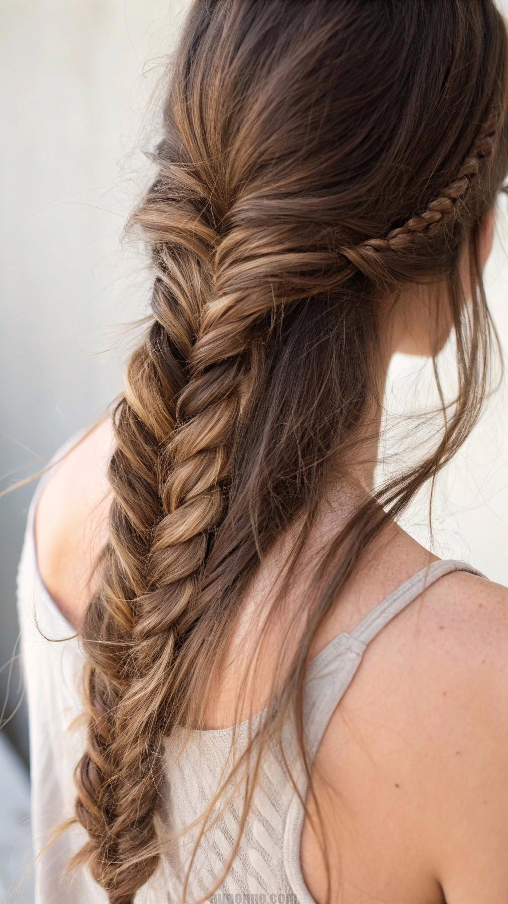 A fishtail braid adds a boho-chic touch to thick hair. Split your hair into two sections and cross small pieces inward to create the braid. Secure the end with a hair tie for a polished look.