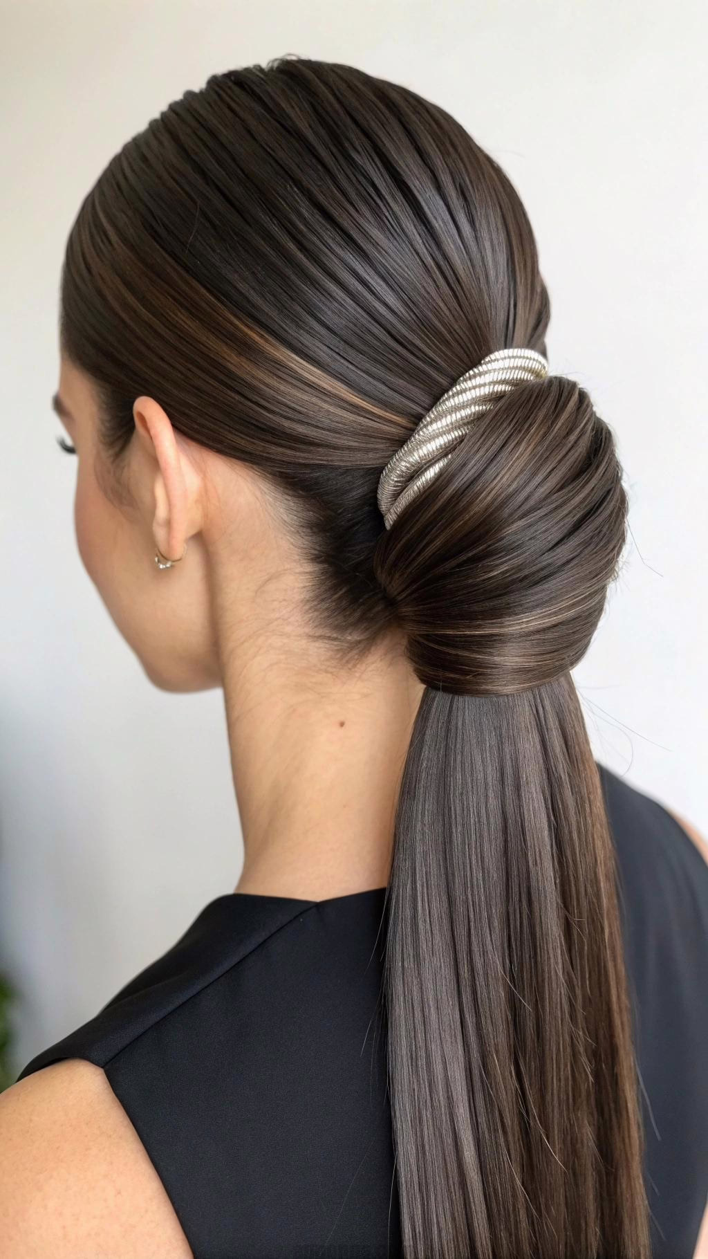 A rope braid ponytail elevates a simple style. Twist two sections of your ponytail around each other tightly. Secure the end for a sleek, polished finish.