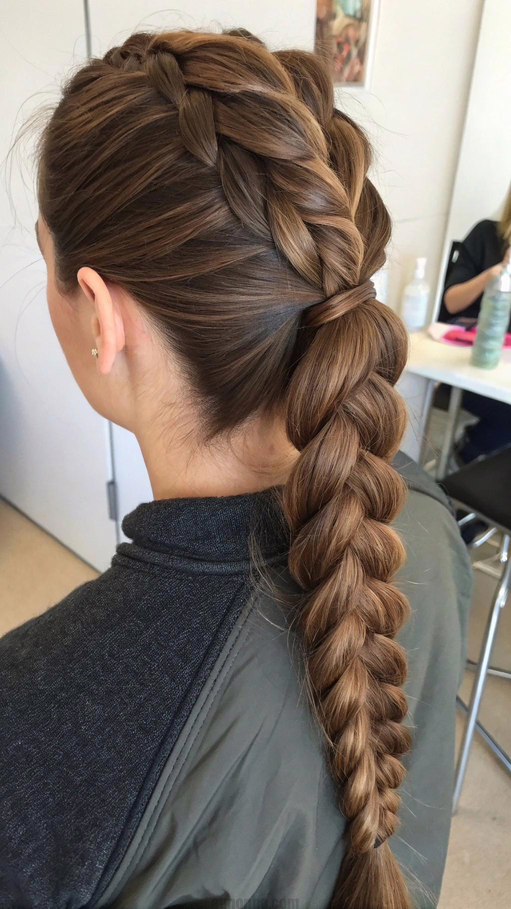 A four-strand braid adds complexity to thick hair. Divide hair into four equal sections and weave alternately. The extra strand creates a stunning, intricate pattern.