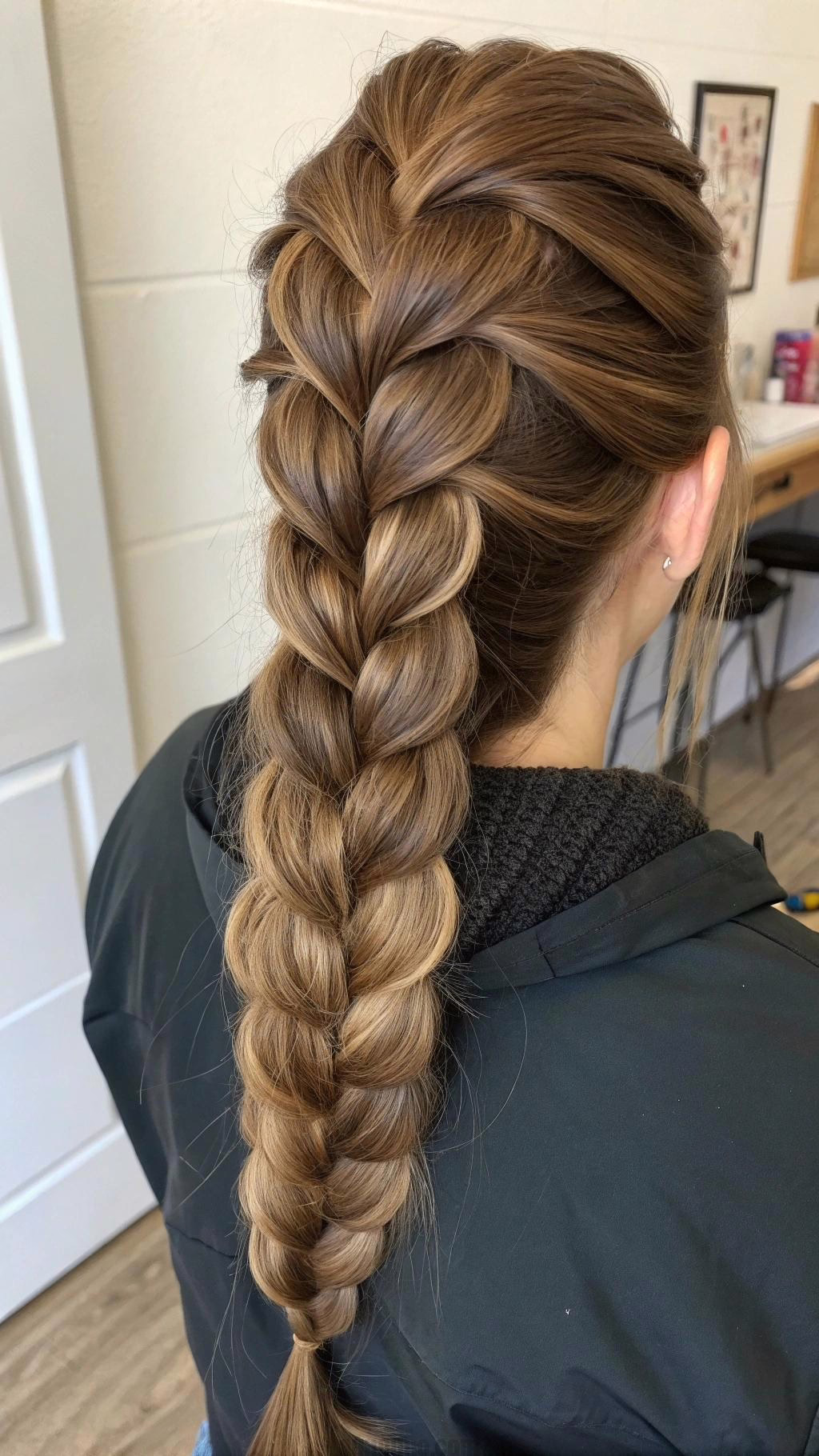 A triple braided ponytail makes a statement with thick hair. Divide your ponytail into three sections and braid each. Combine them at the ends for a bold finish.