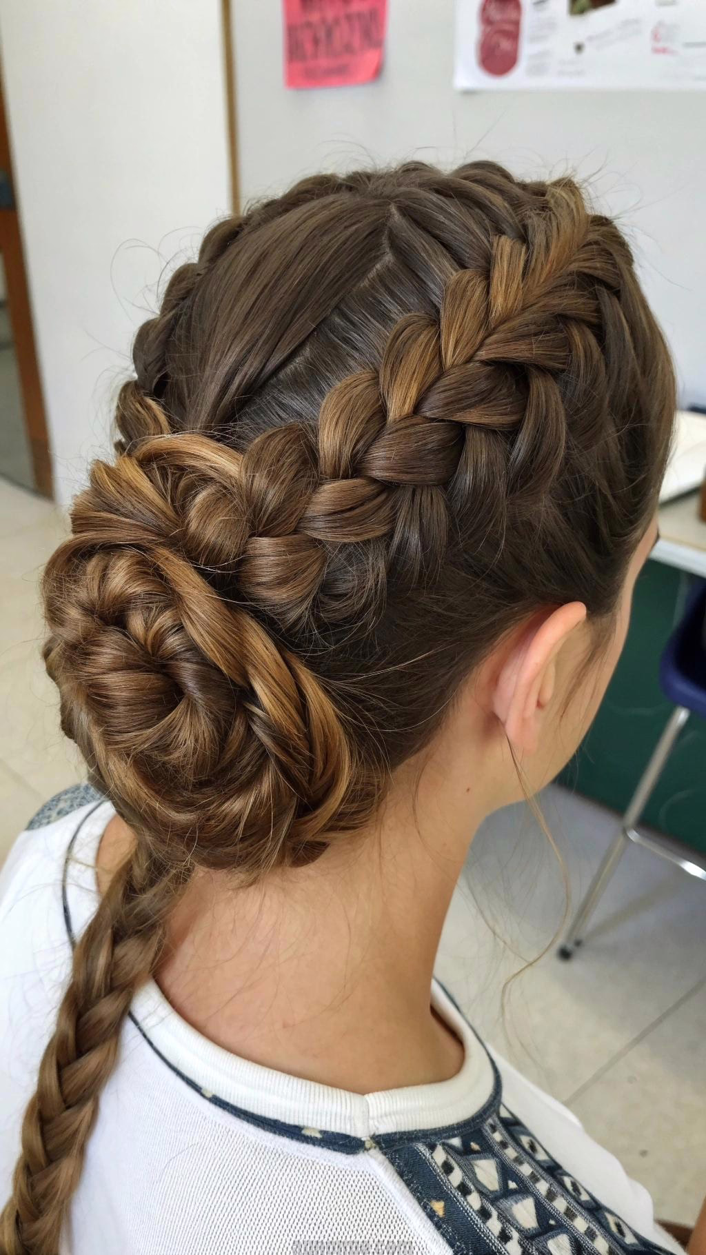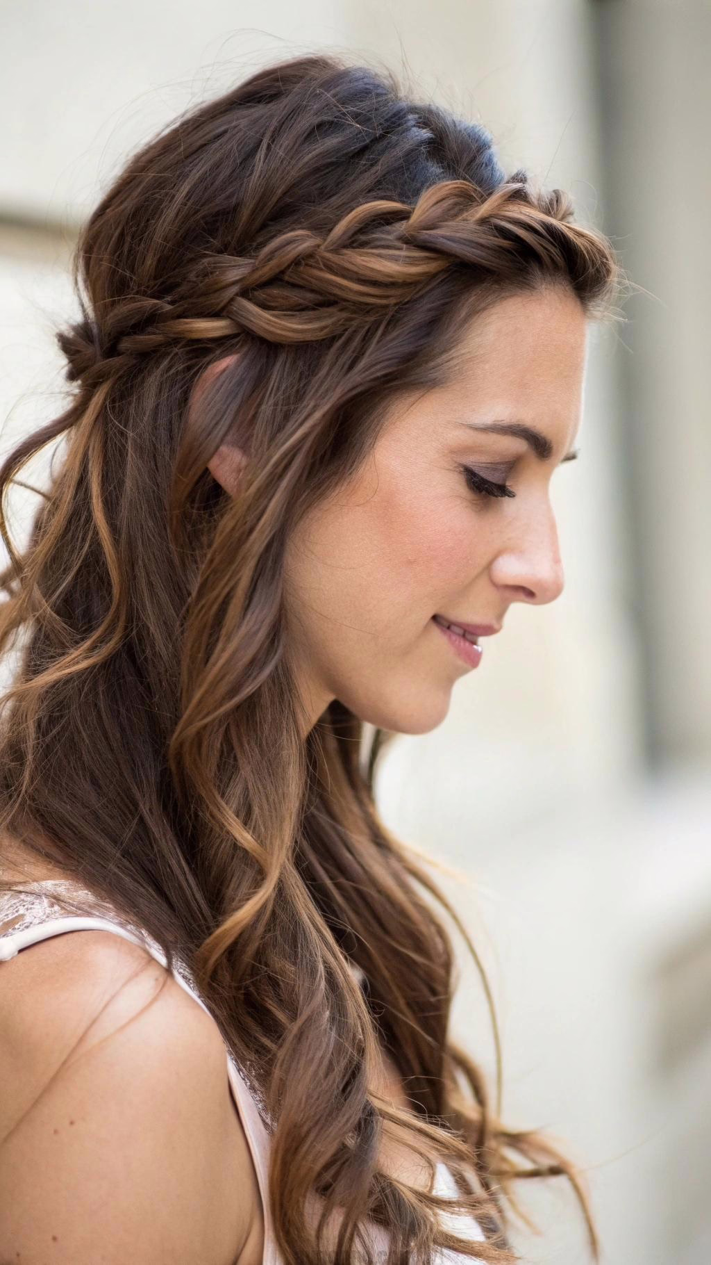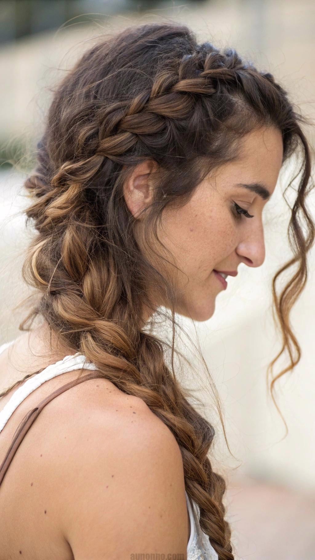 This style adds interest while being practical. Wonderful for summer days or outdoor events. The braid acts as both decoration and function.