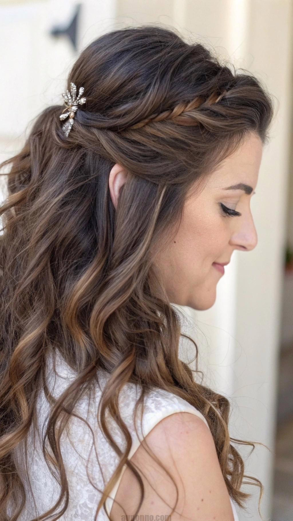 The half-up half-down style balances volume and manageability. Gather the top section of your hair and tie it loosely. Leave the rest flowing for a feminine, romantic look.