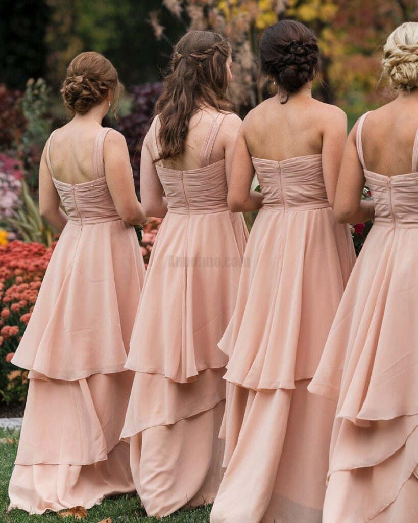Peach is a soft, romantic color that’s perfect for fall weddings. Chiffon dresses in this shade add movement and elegance to the look. This style is ideal for creating a dreamy, ethereal vibe.