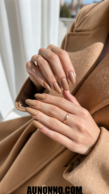 Caramel cream nails combine warmth with subtle sophistication. This light brown shade with golden undertones feels cozy and approachable. The color elongates fingers while maintaining an autumn-appropriate tone.