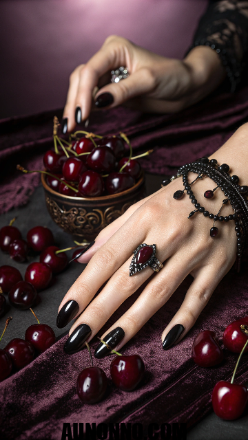 Black cherry nails combine deep purple with dark red tones dramatically. This vampy shade feels mysterious and alluring. The color works perfectly for evening fall events.