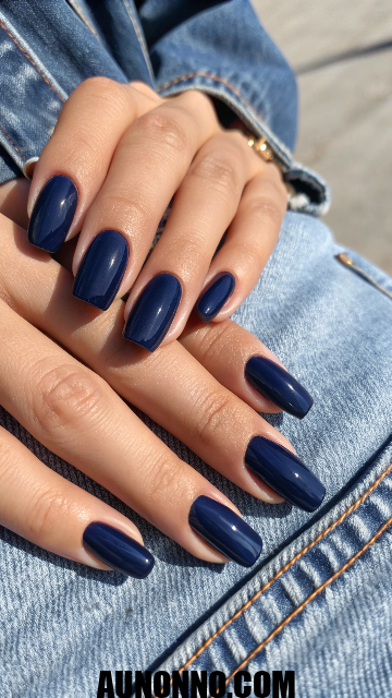 Navy blue nails offer a refined alternative to traditional black polish. This deep blue shade feels professional and polished for any setting. The color works year-round but feels particularly appropriate for fall and winter months.