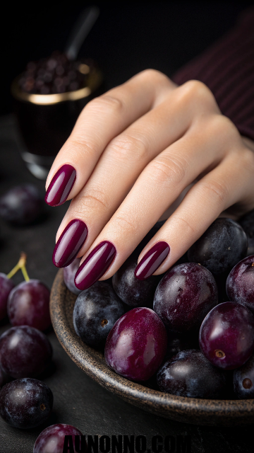 Plum nails combine the sophistication of purple with the warmth of red tones. This deep berry shade fits perfectly into the autumn color story. The color feels romantic and moody, matching the changing season’s atmosphere.