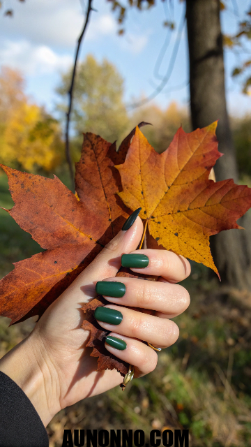 Forest green nails bring an earthy, sophisticated vibe to your autumn style. This deep green shade connects you to nature during the fall season. The color works as a neutral alternative to traditional browns and blacks.