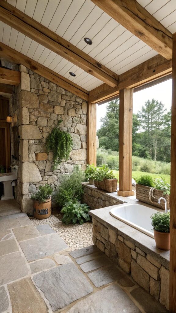 Incorporating natural elements into your farmhouse bathroom can create a calming environment. Use materials like stone, wood, and plants to bring the outdoors in.