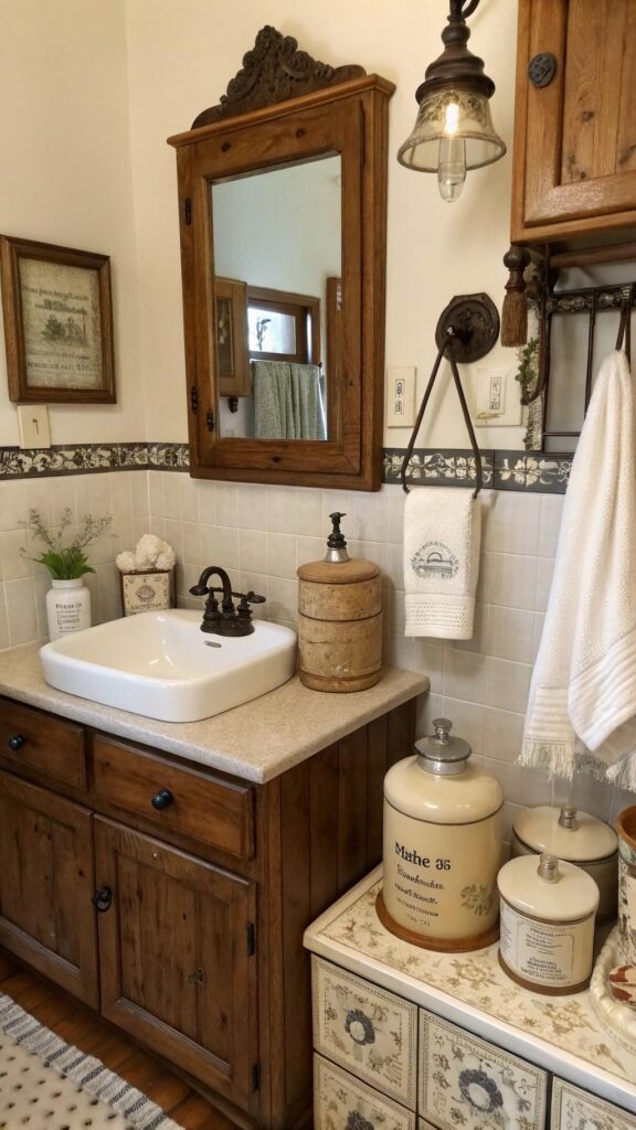 Incorporating vintage accessories can add character to your farmhouse bathroom. Look for items like antique mirrors, old-fashioned soap dispensers, or vintage-style storage containers. These pieces can serve as conversation starters while enhancing the overall aesthetic of the room.