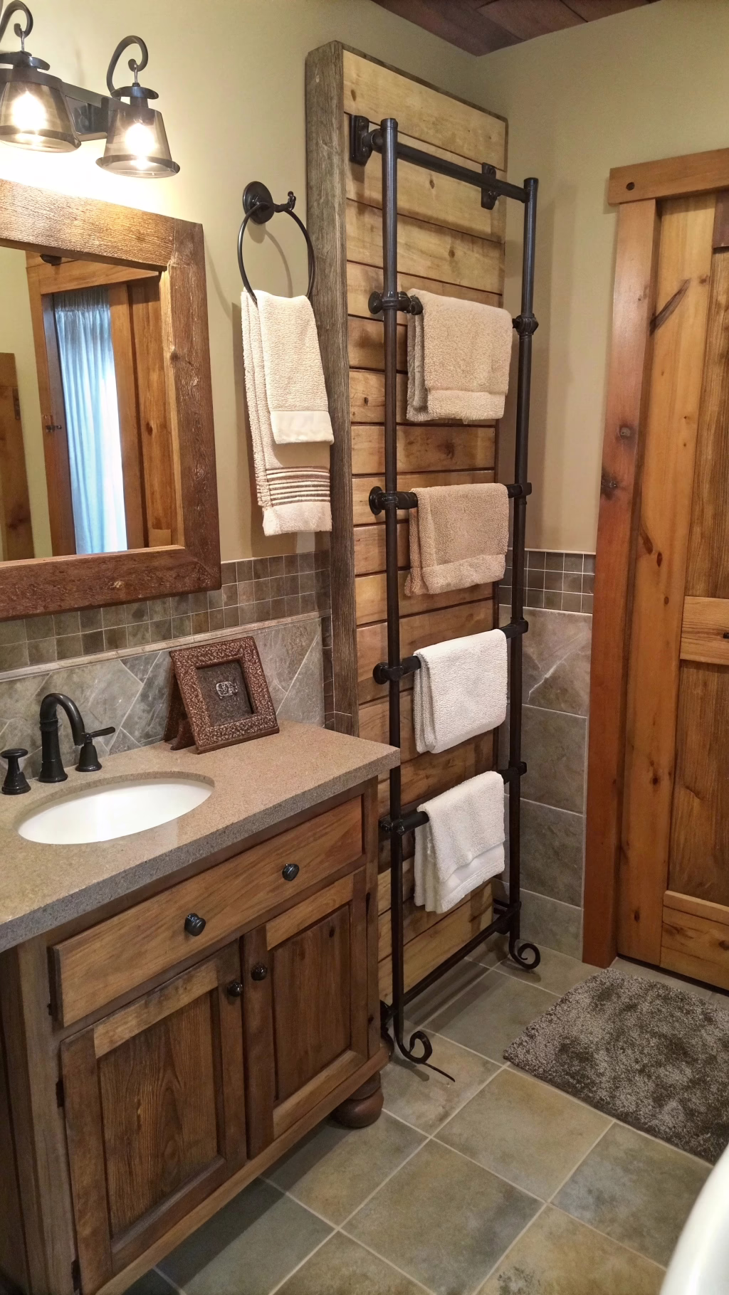 Rustic towel racks can add functionality and charm to your farmhouse bathroom. Look for racks made from reclaimed wood or wrought iron to maintain the rustic aesthetic. These racks can be mounted on the wall or freestanding, providing a stylish way to keep towels organized.