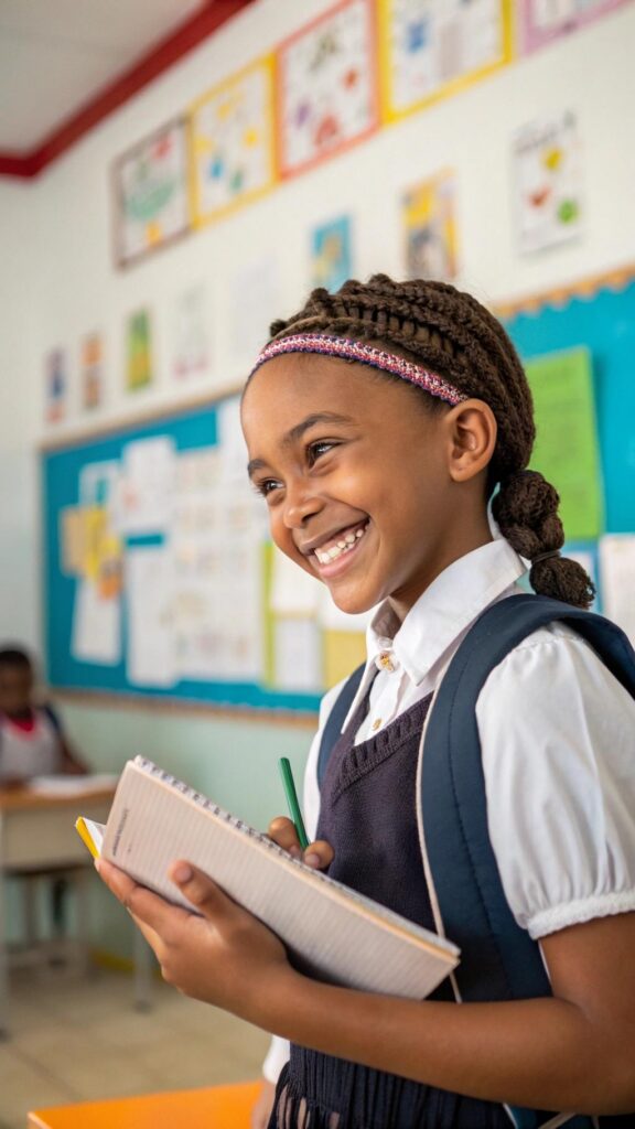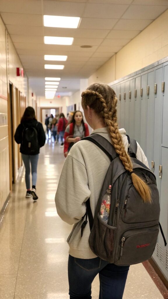 A braided ponytail is a stylish and practical hairstyle for the first day of school. It’s perfect for keeping your hair secure and looking great. This style works well for medium to long hair.