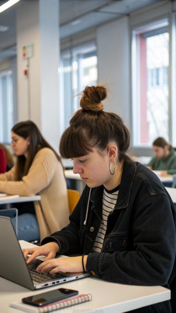 A half-up twisted bun is a unique and elegant hairstyle for the first day of school. It’s perfect for adding a touch of sophistication to your look. This style works well for medium to long hair.