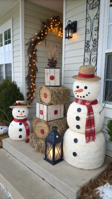 For a more interactive element, consider placing a snowman family on your porch, complete with a snowwoman and snowchildren. This creates a delightful scene that captures the essence of the holiday season. You can also incorporate snowman-themed accessories, like lanterns or garden stakes, to enhance the theme.