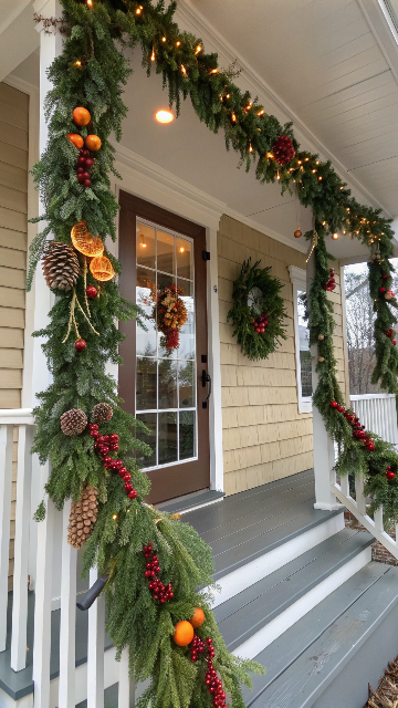 Garlands are a versatile decoration that can add elegance to your front porch. Drape fresh or faux garlands along your porch railing, around door frames, or across the ceiling. Choose garlands adorned with lights, pinecones, or berries to enhance the festive look.